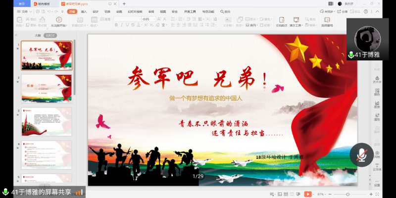 2020年5月23日下午,艺术系辅导员迟达老师召集艺术系17、19届同学围绕参军政策召开了以“奋斗中成长,成长中前行”为主题的会议。